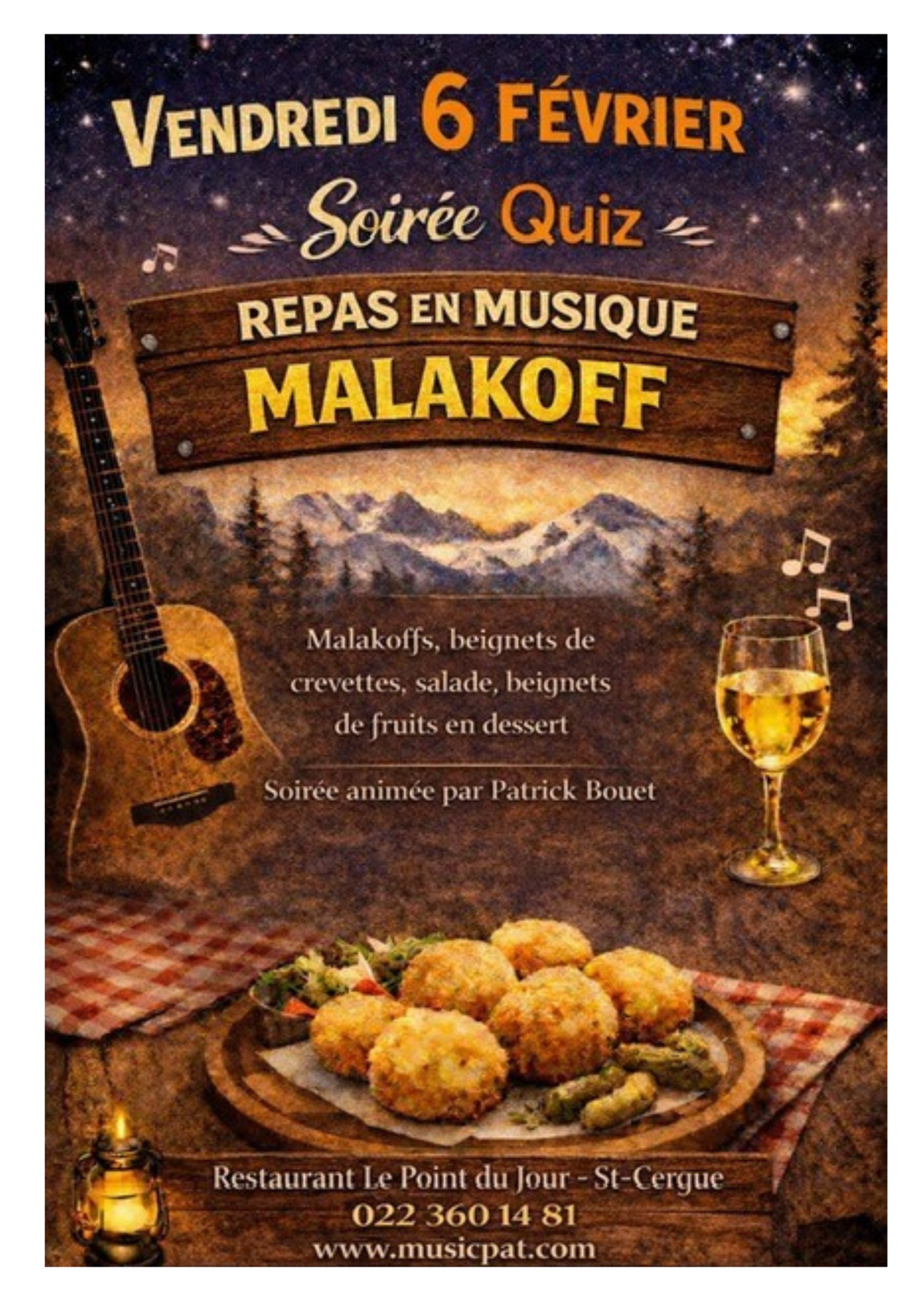 Im Restaurant Point du Jour ein Quiz- und Musikabend mit einer Spezialität der Region, den „Malakoffs“.
