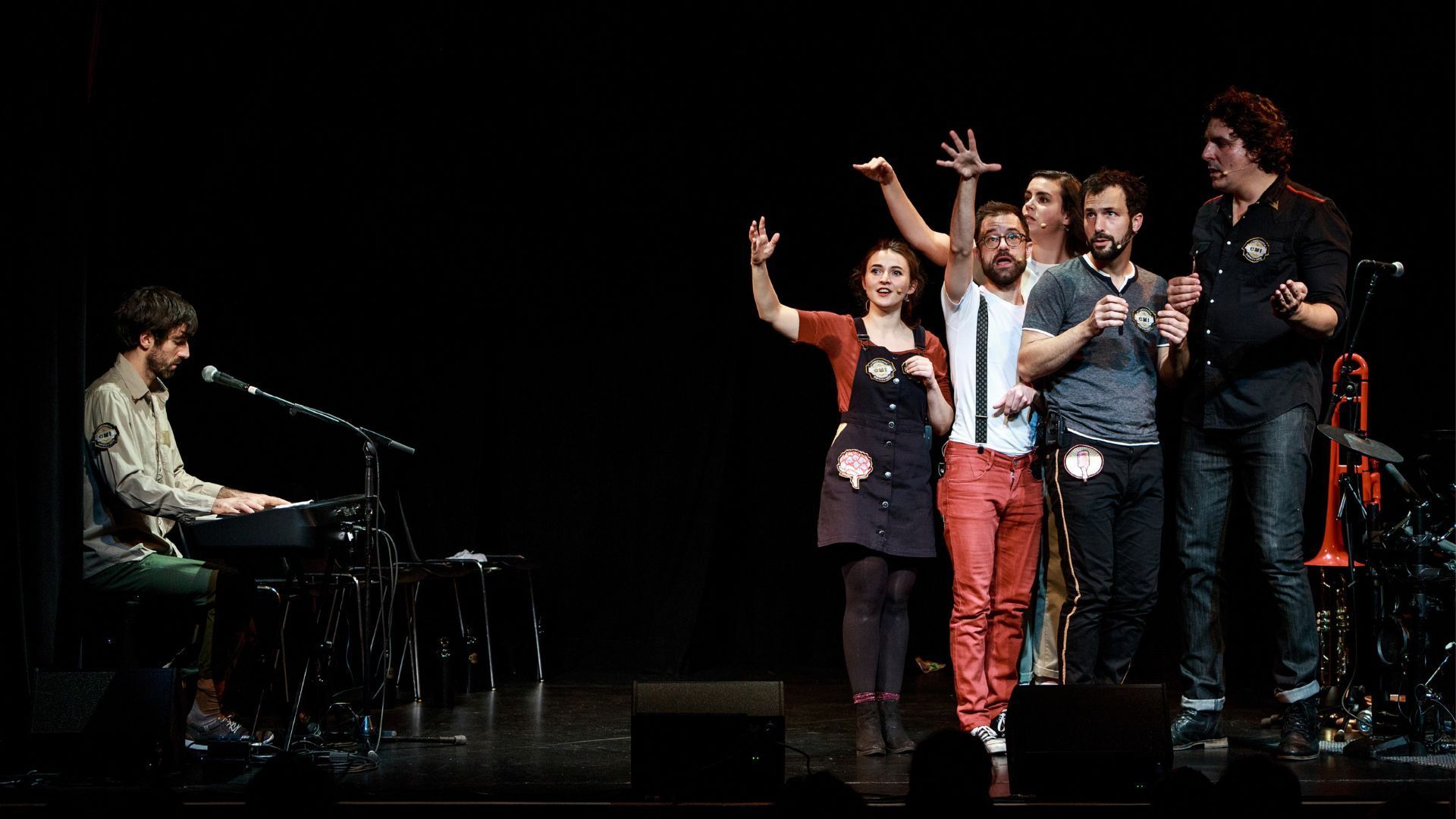 Each performance is a brand-new, breathtaking creation: starting from a simple audience suggestion, six virtuosos of words and wit sculpt rhymes and melodies to elevate themselves in a fleeting and exclusive musical comedy.
