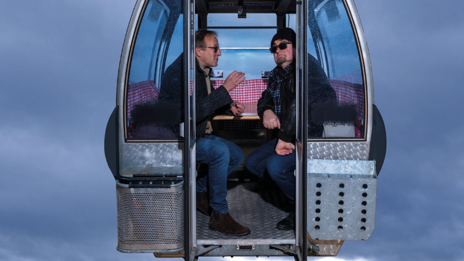 A chic ski resort in the Alps. Two men find themselves face to face in a cable car.