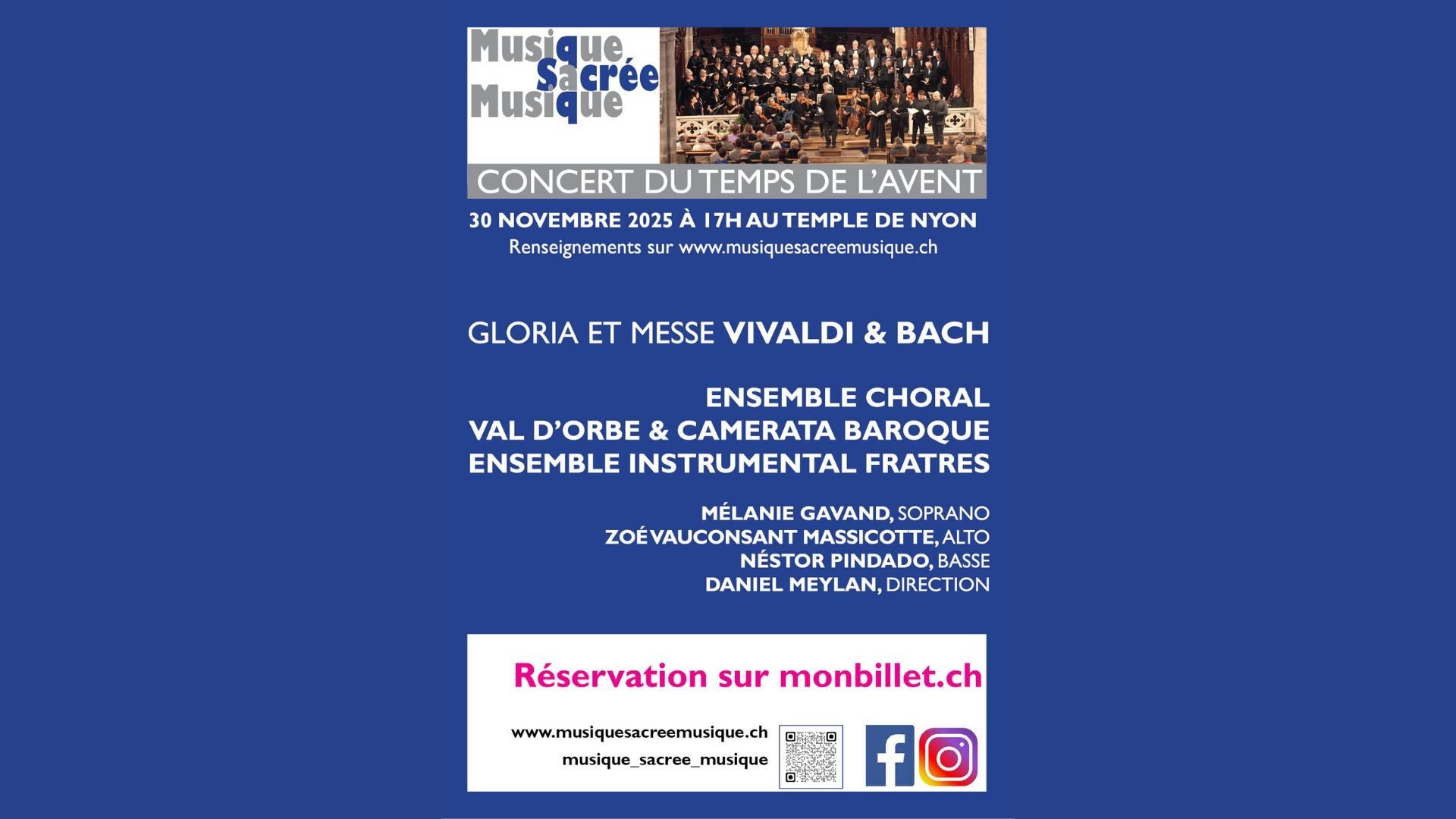 Gloria et Messe Vivaldi & Bach Ensemble choral Val d’Orbe & Camerata Baroque Ensemble instrumental Fratres Mélanie Gavand, soprano Zoé Vauconsant Massicotte, alto Néstor Pindado, basse Daniel Meylan, direction